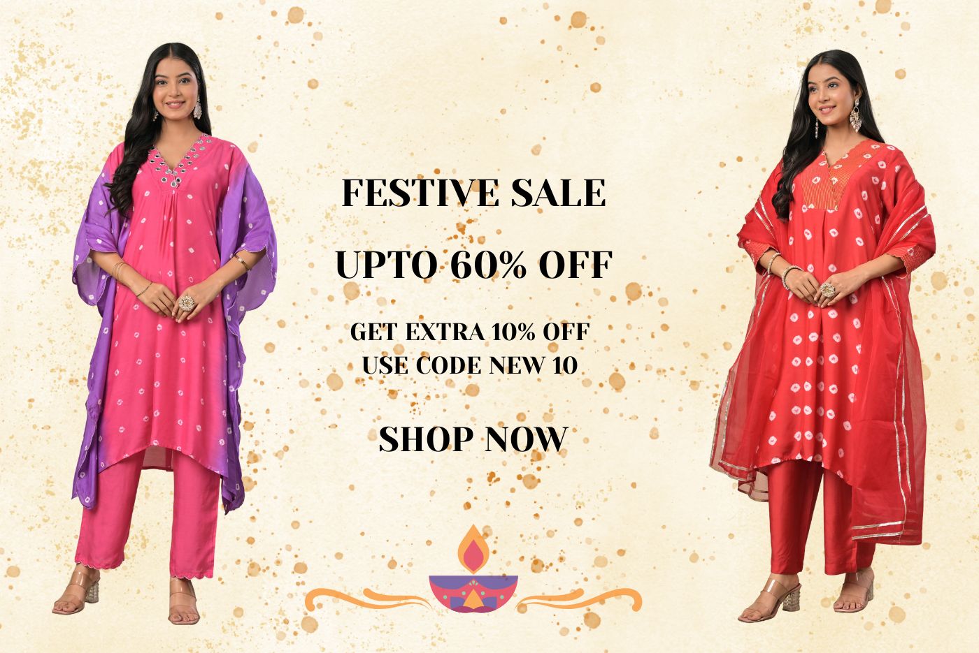 Pink Purple hand bandhej Muslin Silk Kaftan set